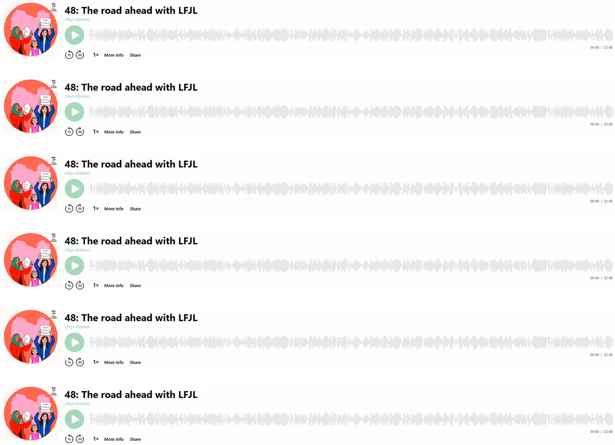 “It is difficult to explain Libya in a two-minute news segment or even an opinion piece in a newspaper, and so we thought we would help fill the gap with a podcast that could give the Libyan story the necessary nuance sometimes missing in international coverage”. Elham Saudi, Director of LFJL.